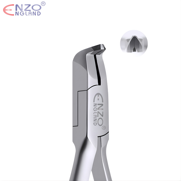 One of our Best Selling Orthodontic Cutters, this Distal End Cutter is precisely designed for safe Intra-oral Cutting of wires. With a sleek V-shaped tip, Inserted with the Ultra-Strong Tungsten Carbide, this cutter can effortlessly cut through all wires up to 0.025″ while safely holding the loose distal end of the wire to be disposed off.