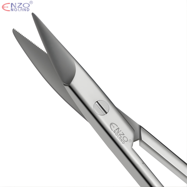 Super-cut series featuring one blade honed to “razor” sharpness while the opposing blade features fine-serrations to allow for maximum grip and minimize tissue slippage.